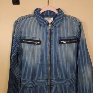 Sandrine Rose Pinstripe Long Sleeve Denim Romper Size S