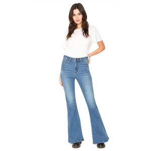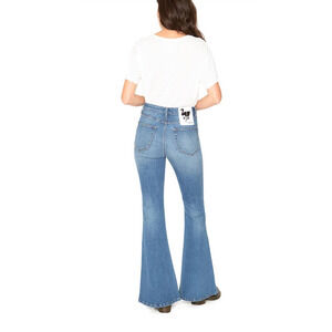 70s style is back in a big way. Add these super flare denim to your wardrobe. These jeans are perfect for a relaxed look with a tee or a floral blouse for an elevated look. There is light distressing and subtle whiskering. These jeans have a high rise and a medium wash. They are almost 100% cotton, so they will fit with little stretch and can shrink if washed warm or dried warm. A classic look and feel. New with tags.