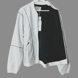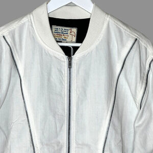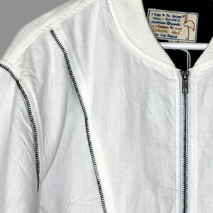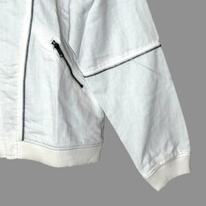 Sandrine Rose Zip Bomber Style Jacket White Oversized Linen Blend NWT