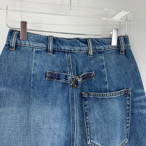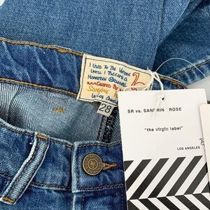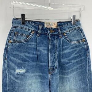 Sandrine Rose wide leg high rise pleated denim jeans distressed blue new 28
