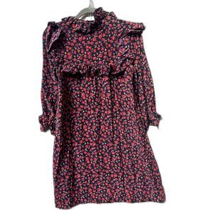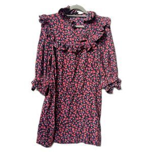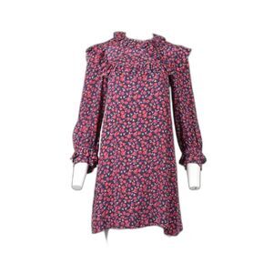 Sandro 100% Silk Floral Print Mini Dress Ruffle Detail Shift Dress 1 or XS