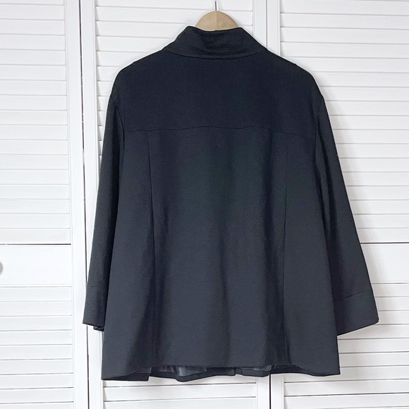 Sandro two-button swing jacket. High collar, 3/4 length sleeves. Black or dark charcoal grey. Fully lined, slight stretch. Size 1X.