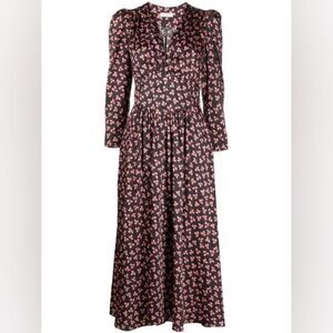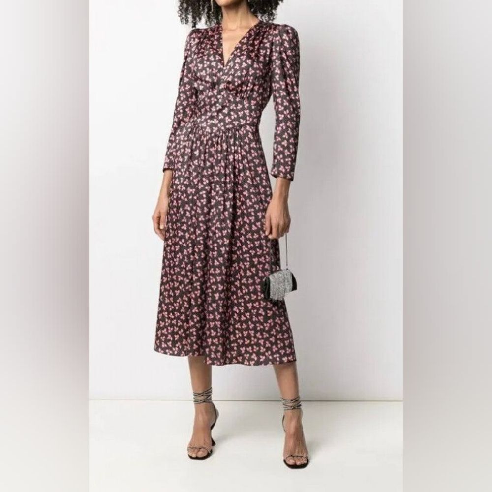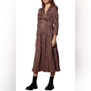 What's more groundbreaking than a floral midi for spring? A floral midi made from recycled materials, of course. Take this Billie dress from French favourite Sandro. Designed from recycled polyester, the design doesn't only have our attention with its plunging V neck and pleated skirt, but it also limits the effect on our environment by promoting a 360 circular approach to fashion (pretty genius, we know). Who said you couldn't look fresh while saving our planet?Sandro recycled polyester midi dress100% polyesterConcealed zip at sideV neck, long leg of mutton sleeves, gathered cups, empire line silhouette, decorative gemstone buttons at front, structured waistband, all over ditsy floral pattern and satin texture, tonal stitching, curved hemMachine wash coldTrue to sizeSize UK 8 / EU 36: length 46in / 117cmModel is 5ft 10in/1.78m and wears a size UK 8Midweight, non stretch