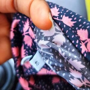 Stylish fabric with a pink and black floral pattern. Perfect for crafting or fashion projects.