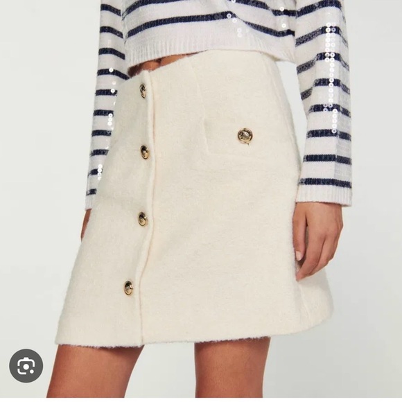 This chic cream skirt features a stylish button-up design, perfect for any occasion. Its elegant look is both versatile and timeless. By 2