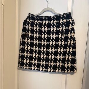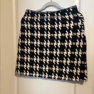 Elevate your wardrobe with this chic black and white houndstooth skirt. Perfect for any occasion, this skirt offers a timeless look.byb 3