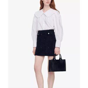 Sandro Alda Ruffle Collar Button-Up Shirt in White