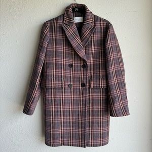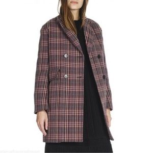 A classic plaid print and double-breasted silhouette give this topper from Sandro a traditional tailored look that adds polish to any outfit.