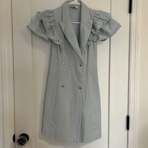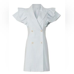 Voluminous ruffles dress up the sleeves of this blazer-inspired Sandro dress we love for the office or after-hour events.