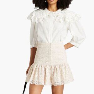 Sandro Angus Lace Collar Cotton Blouse in Ecru White Size 4 (US 10)