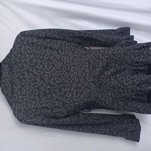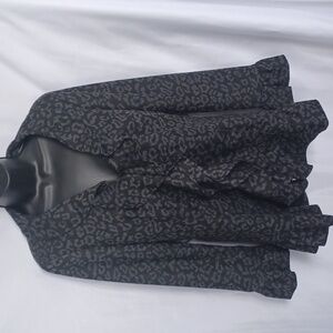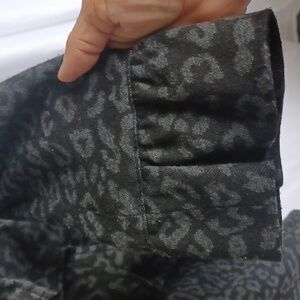 Sandro Animal Print Jacket Gray Black, snap closure, ruffle front & hem