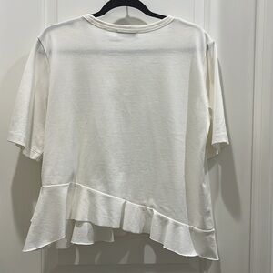 Sandro Asymmetric Ruffle Hem Short Sleeve T-Shirt White Sz 3 (M)