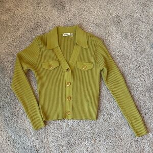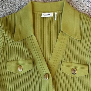 Sandro Axel Ribbed Knit Cardigan in Olive Green