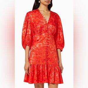 Sandro Azelie Red Mini Dress Floral V Neck Half Sleeve Silk Blend Sz 40 L