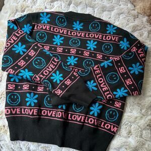 Contrast smiley, flower, love and logo jacquard knit