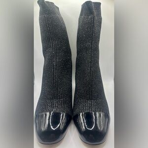Sandro Black Ankle Sock Boots with Glossy Toe