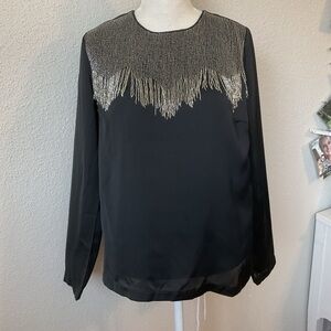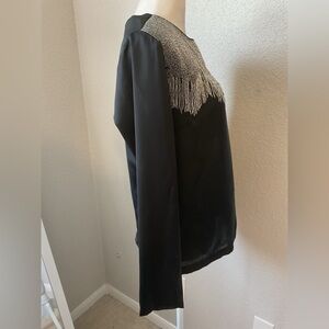 Sandro Black Beaded Tassel Long Sleeve Top Size Small
