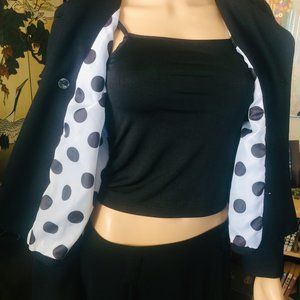 Cute Sandro black jacket with black & white poke a dot lining, two slip pocket, & in good condition