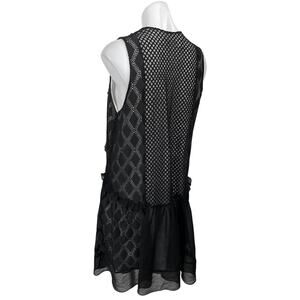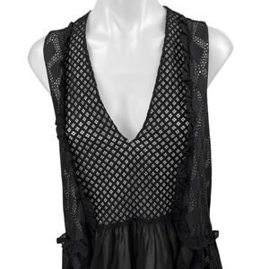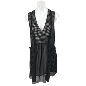 Sandro Black Lace Sleeveless Open Knit Overlay V-Neck Boho Mini Dress Size 3