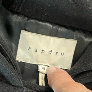 Sandro Black Wool & Lamb Leather Winter Coat Size 36 / Small