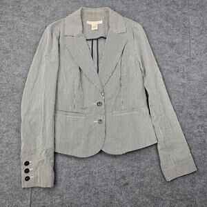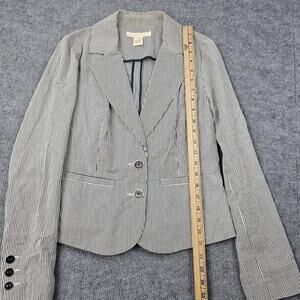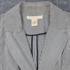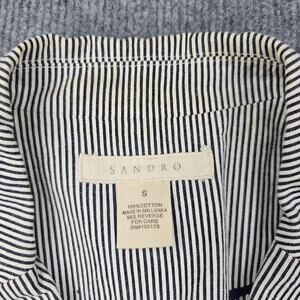 Sandro Blazer Womens Small Navy Career Cotton Two Button Jacket Pinstripe Preppy