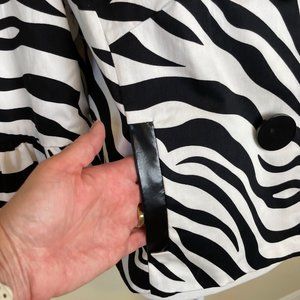 Thanks for your interest in supporting the sustainable, circular movement of preowned fashion! Bundle with my other items to save on shipping- Please feel free to contact me with any questions about this black white zebra animal print cropped blazer by designer label Sandro