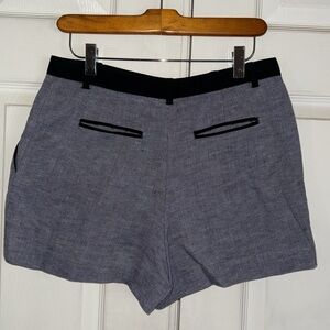 Sandro blue cotton/linen high waist shorts. Flat front with 4 pocket detail. Size 38 = US 6. 15” waist across top laid flat. 12 1/8” rise. 2” inseam. Excellent like new condition