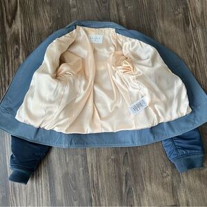 Sandro Blue Goat Leather Coat Biker Moto Bomber Jacket with Pleated Sleeves