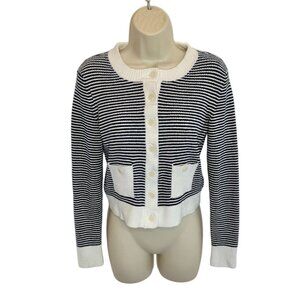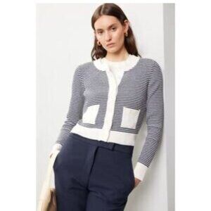 Tags: Sandro, cardigan, preppy, striped, ribbed knit, round neck, collegiate, academia, ivy league, school girl, casual, office, workwear, career, party, cruise, yacht, country club