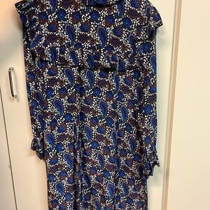Sandro Blue and Orange Paisley Long Sleeve Dress