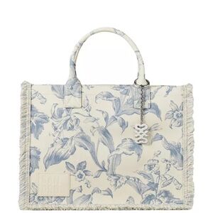 Sandro Blue and White Toile Kabesh Floral Tote Bag