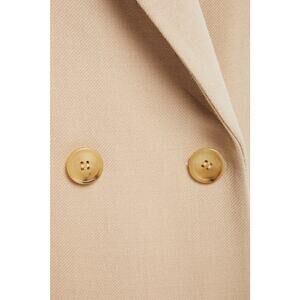 Featuring a structured silhouette with shoulder pads and a double-breasted front. Detailed with two front flap pockets, button fastenings, and a back vent for ease of movement. Crafted from a mid-weight wool-blend twill with a smooth, fully lined interior. Non-stretch fabric for a tailored fit. Material: Wool-blend twill. Dry clean. Fits true to size
