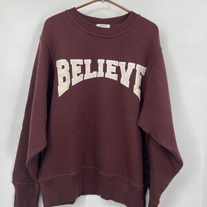 Sandro Brown Crewneck Fleece Believe Andy Pullover Sweatshirt Size 1 NWT