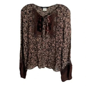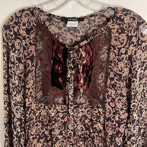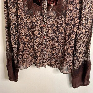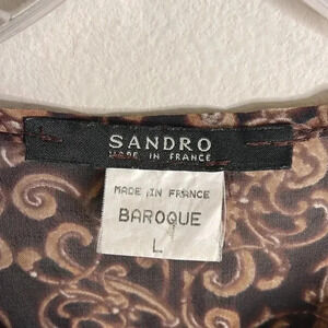 Sandro Brown Paisley Sheer Button Down Blouse Size Medium