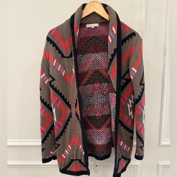 Sandro Brown and Red Geometric Cardigan 100% Cotton