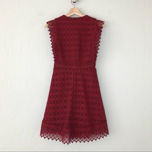 Sandro Burgundy Bordeaux Red Guipure Lace Skater Hem Mini Dress