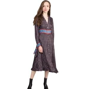 * Sandro Paris Catlyn Long Sleeve 100% Silk Midi Shirt Dress