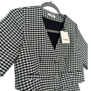 Sandro Charlotte Houndstooth Black and White Tweed Mini Dress XS