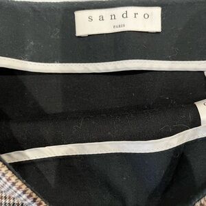 Stylish Sandro mini skirt with a houndstooth pattern. Versatile and timeless design.
