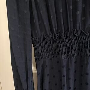 Sandro Claudia Shirred Polka Dot Mini Dress Marine (Please Read)