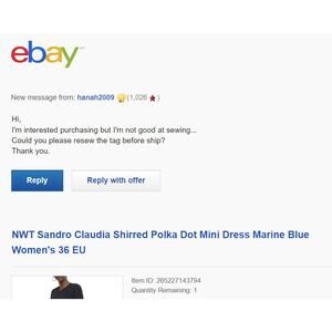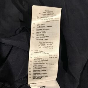 This is a sample item and brand tag was originally mis-sewn on the outside (as shown in pictures). I have received requests from potential buyers asking if the brand tag could be re-sewn on the inside so that has been done (see new pic of brand tag on the inside and note that I'm not a professional so it doesn't look like the original stitching). The item is authentic, please review all tags before purchase (second to last pic shows a closeup of the mis-sewn tag before it was resewn). I do not sell inauthentic items; please see my closet for sold authentic Sandro items.