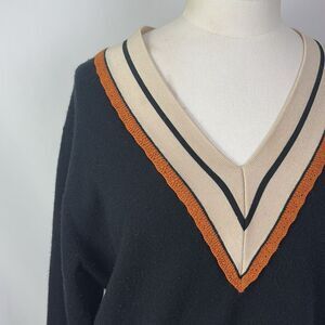 Sandro Colle Striped Neck Wool Cashmere Sweater