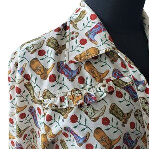 Sandro Cowboy Boot Print Belted Midi Shirt Dress Bootseen Western Cowgirl