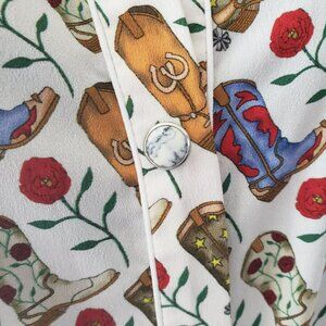 * Sandro "Bootseen Cowboy Boot Print Midi Shirt Dress"