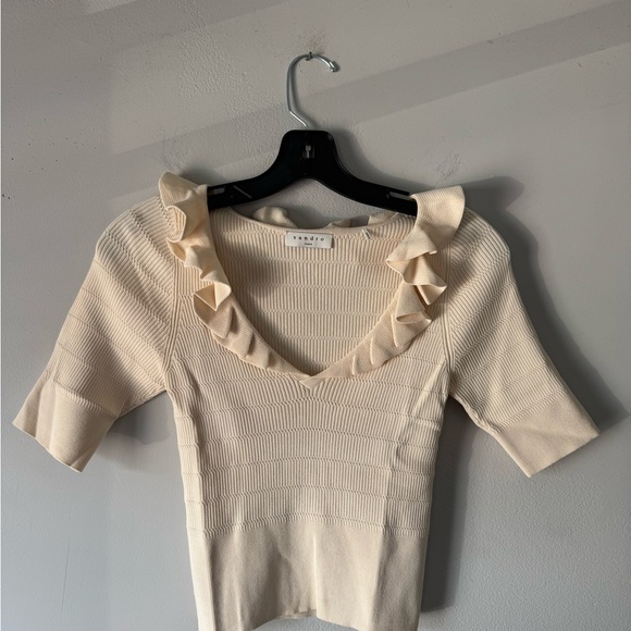 Sandro Short Sleeve Cream Ruffle Top Very Good Condition.