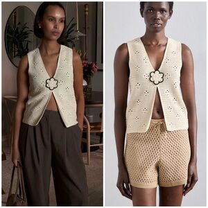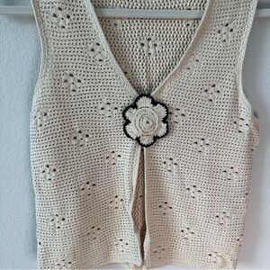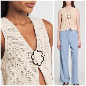Sandro Crochet Knit Vest with Floral Detail Beige Ecru SZ 1 US 4 S