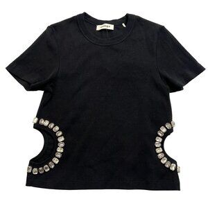 Sandro Crystal Embellished Cut-Out T-Shirt in Black