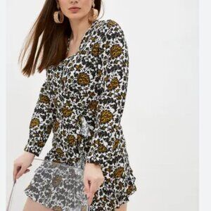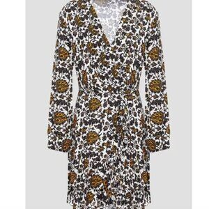 Sandro Dami Dress Mini Short Printed Gathered Paisley Floral White Size 34 US 0