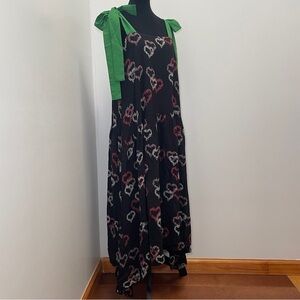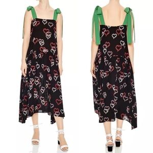 Sandro- Delicate Heart-Motif Midi Dress With Green Straps Size Medium