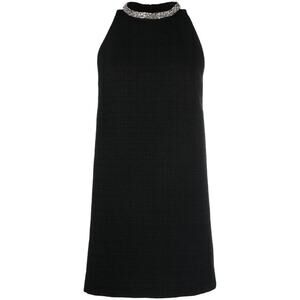 Twinkling rhinestones highlight the neckline of this sophisticated sheath dress cut from cotton-forward tweed.